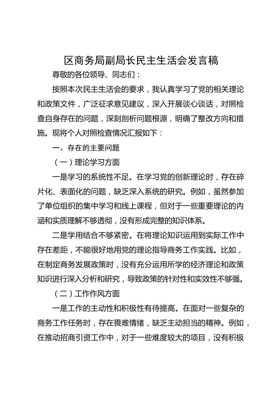 2025區(qū)商務局副局長民主生活會發(fā)言稿VIP免費