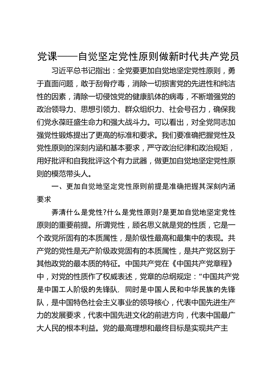 黨課——自覺堅(jiān)定黨性原則 做新時代共產(chǎn)黨員VIP免費(fèi)
