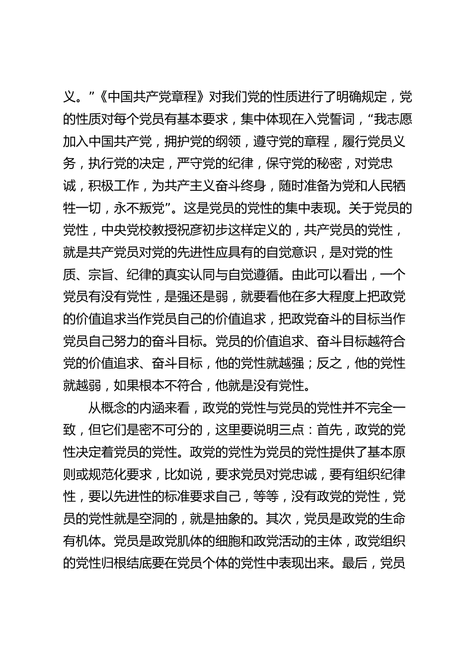 黨課——自覺堅(jiān)定黨性原則做新時代共產(chǎn)黨員習(xí)近平總書記指出:全黨要更加自覺地堅(jiān)定黨性原則,勇于直面問題,敢于刮骨療毒,消除一切損害黨的先進(jìn)性和純潔性的因素,清除一切侵蝕黨的健康肌體的病毒,不斷增強(qiáng)黨的政治領(lǐng)導(dǎo)力、思想引領(lǐng)力、群眾組織力、社會號召力,確保我們黨永葆旺盛生命力和強(qiáng)大戰(zhàn)斗力??梢钥闯?,對全黨同志加強(qiáng)黨性鍛煉提出了更高的標(biāo)準(zhǔn)和要求。我們要準(zhǔn)確把握黨性及黨性原則的深刻內(nèi)涵和基本要求,嚴(yán)守政治紀(jì)律和政治規(guī)矩,用好批評和自我批評這個有力武器,做更加自覺地堅(jiān)定黨性原則的模范帶頭人。一、更加自覺地堅(jiān)定黨性原則前提是準(zhǔn)確把握其深刻...
