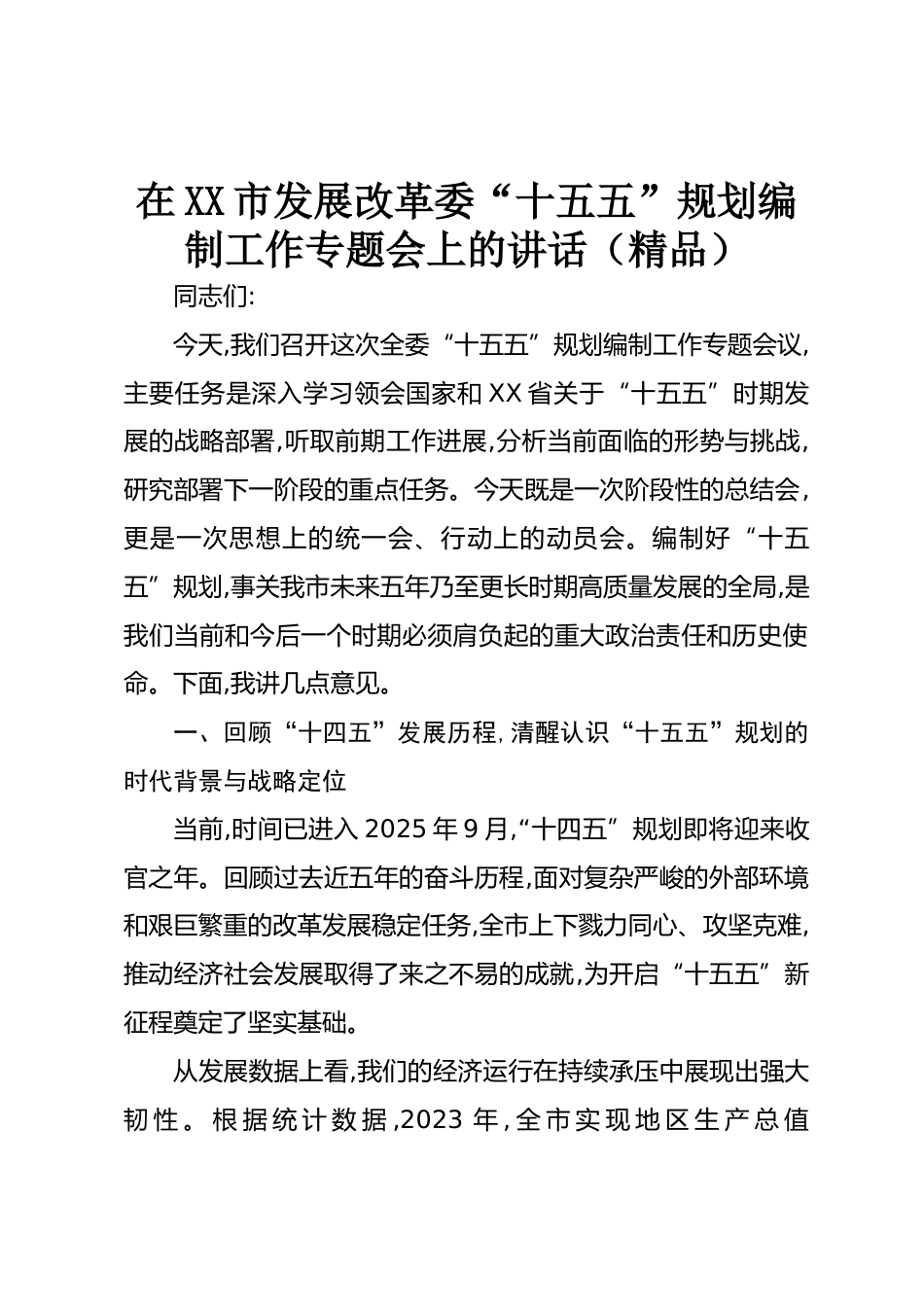 在XX市發(fā)展改革委“十五五”規(guī)劃編制工作專題會上的講話(精品)