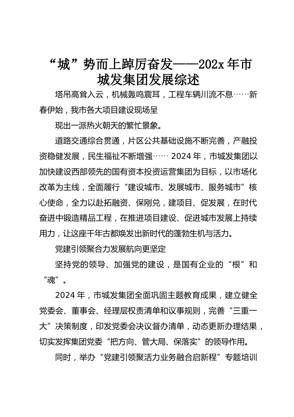 “ 城” 勢(shì)而上 踔厲奮發(fā)——202x年市城發(fā)集團(tuán)發(fā)展綜述