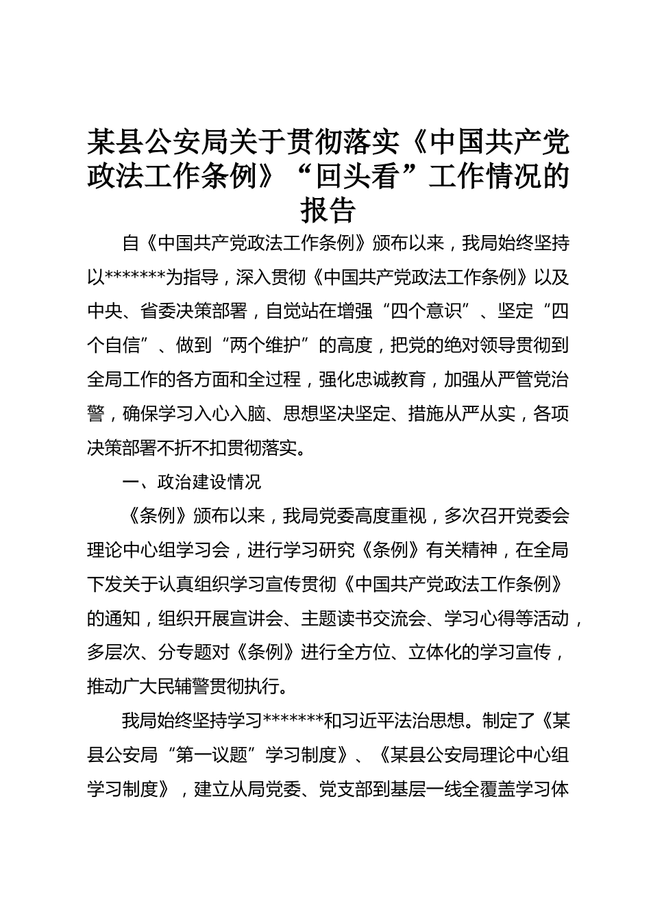 某縣公安局關(guān)于貫徹落實《中國共產(chǎn)黨政法工作條例》“回頭看”工作情況的報告