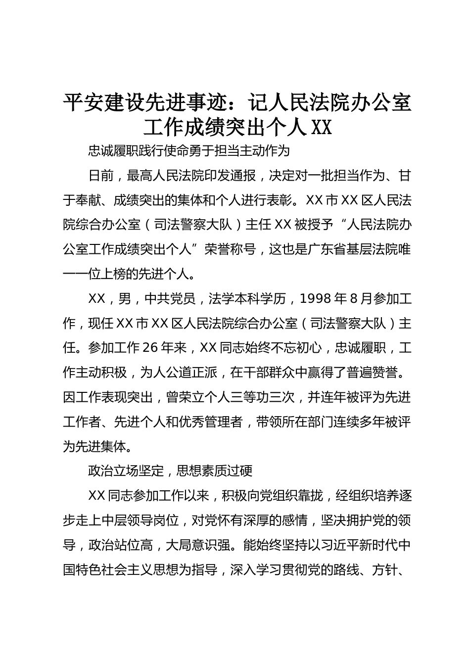 平安建設(shè)先進(jìn)事跡:記人民法院辦公室工作成績(jī)突出個(gè)人XX