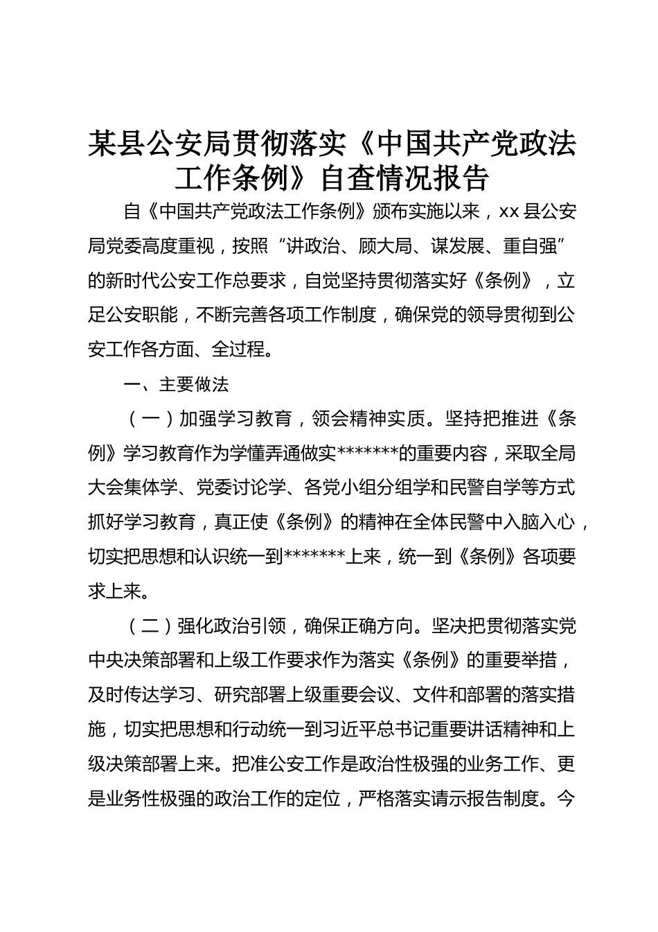 某縣公安局貫徹落實《中國共產(chǎn)黨政法工作條例》自查情況報告VIP免費
