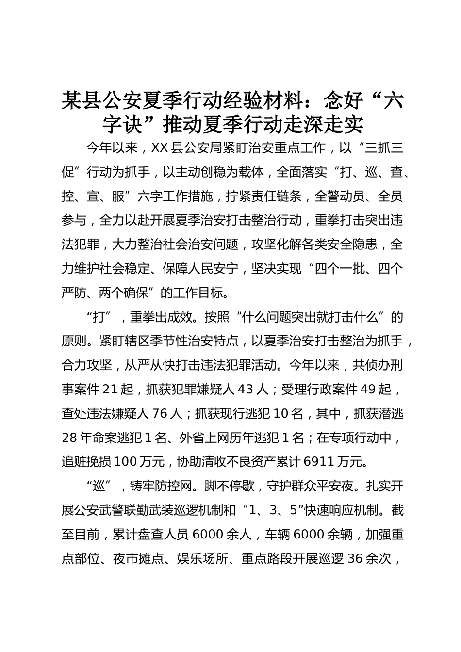 某縣公安夏季行動經(jīng)驗(yàn)材料:念好“六字訣” 推動夏季行動走深走實(shí)