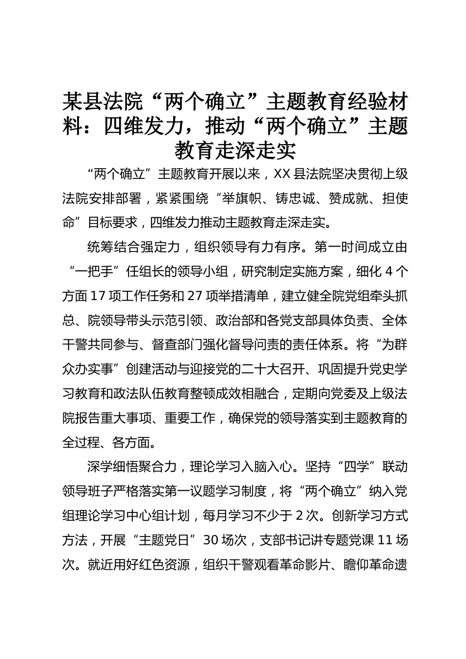 某縣法院“兩個確立”主題教育經(jīng)驗材料:四維發(fā)力,推動“兩個確立”主題教育走深走實