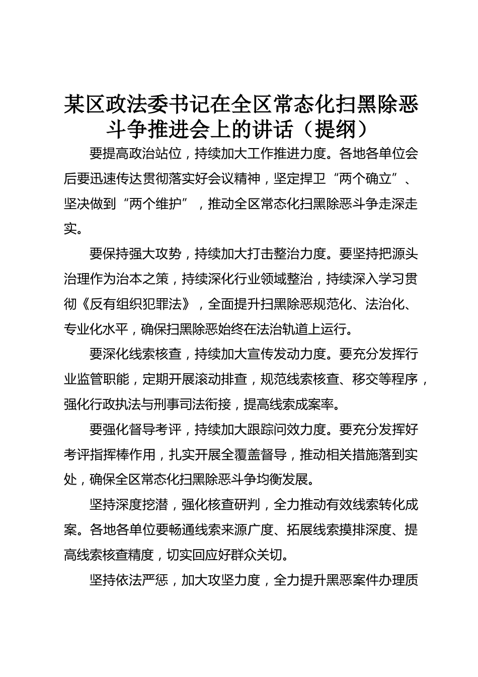 某區(qū)政法委書記在全區(qū)常態(tài)化掃黑除惡斗爭推進會上的講話(提綱)