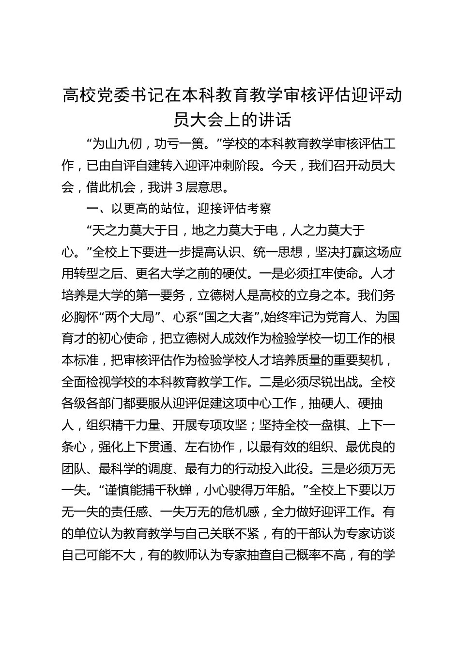 高校黨委書記在本科教育教學(xué)審核評估迎評動(dòng)員大會上的講話