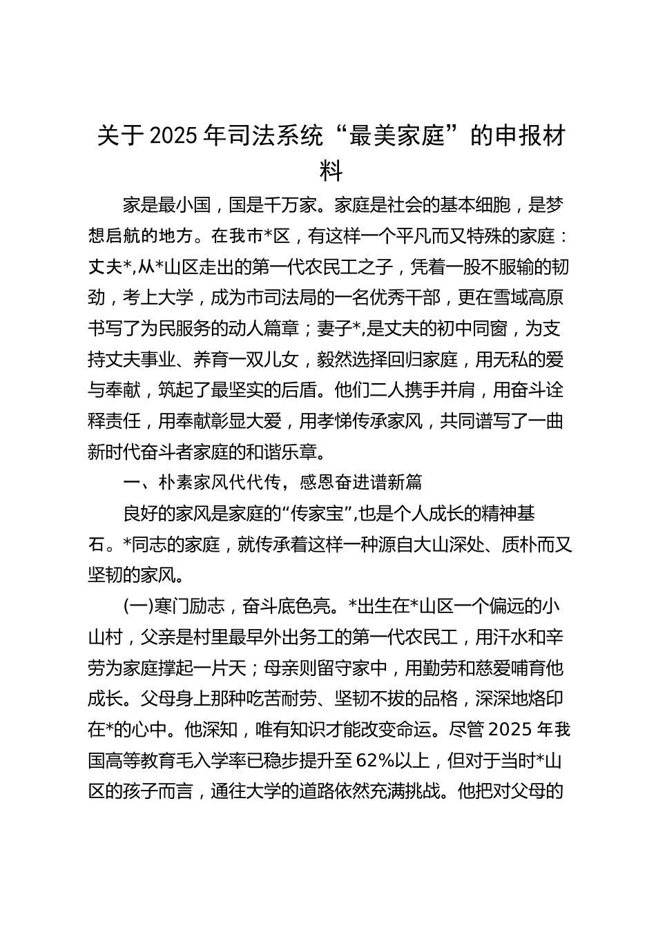 關(guān)于2025年司法系統(tǒng)“最美家庭”的申報(bào)材料
