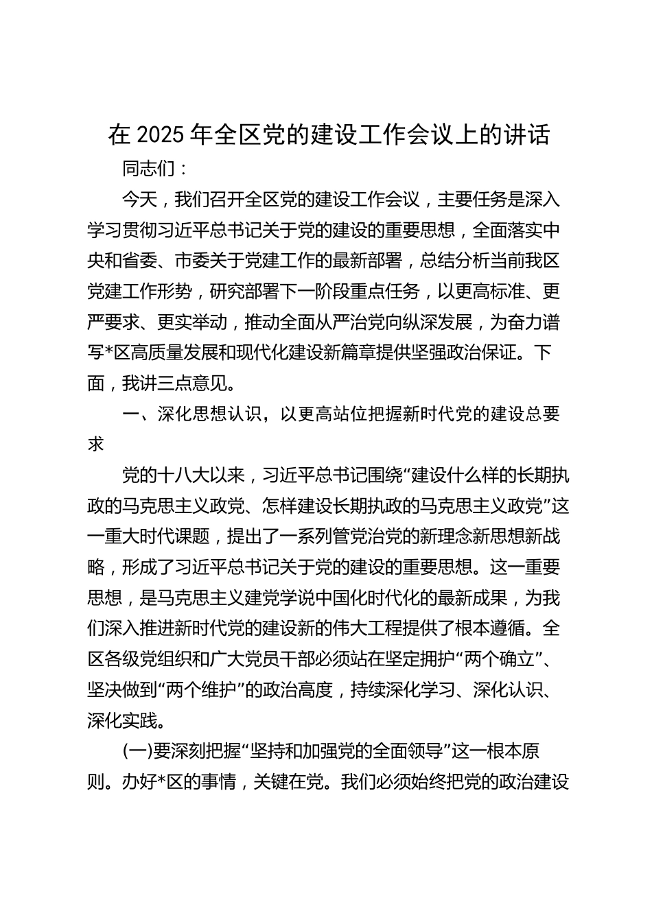 在2025年全區(qū)黨的建設(shè)工作會議上的講話