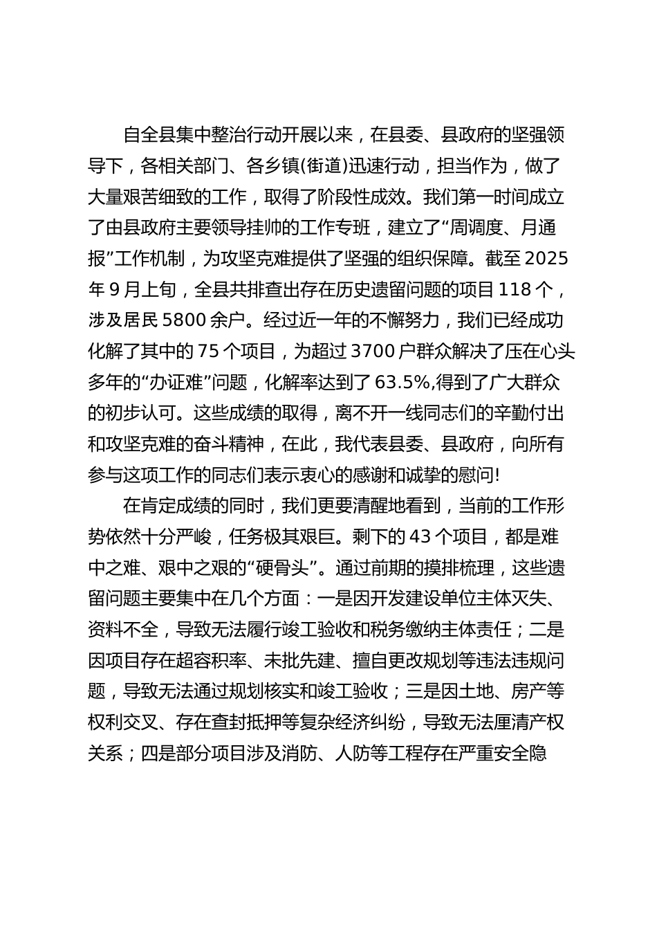 在2025年全縣集中整治不動產(chǎn)“登記難”問題工作推進會暨處遺專題會上的講話