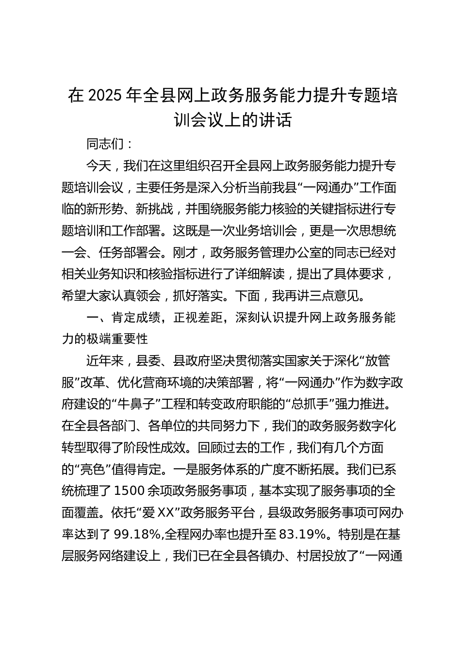 在2025年全縣網(wǎng)上政務服務能力提升專題培訓會議上的講話