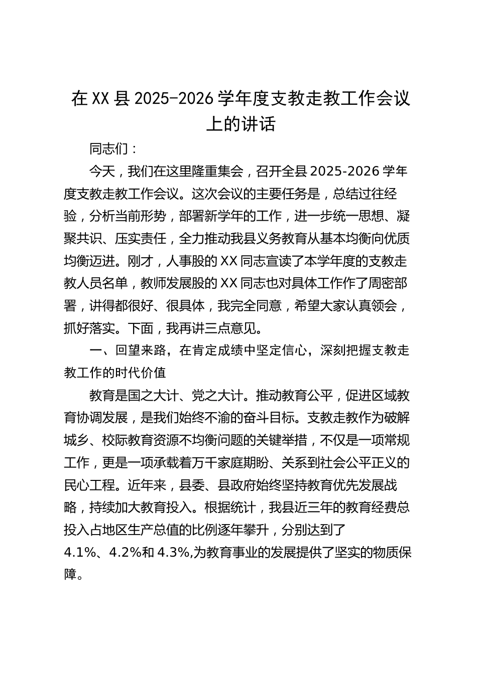 在縣2025-2026學(xué)年度支教走教工作會議上的講話