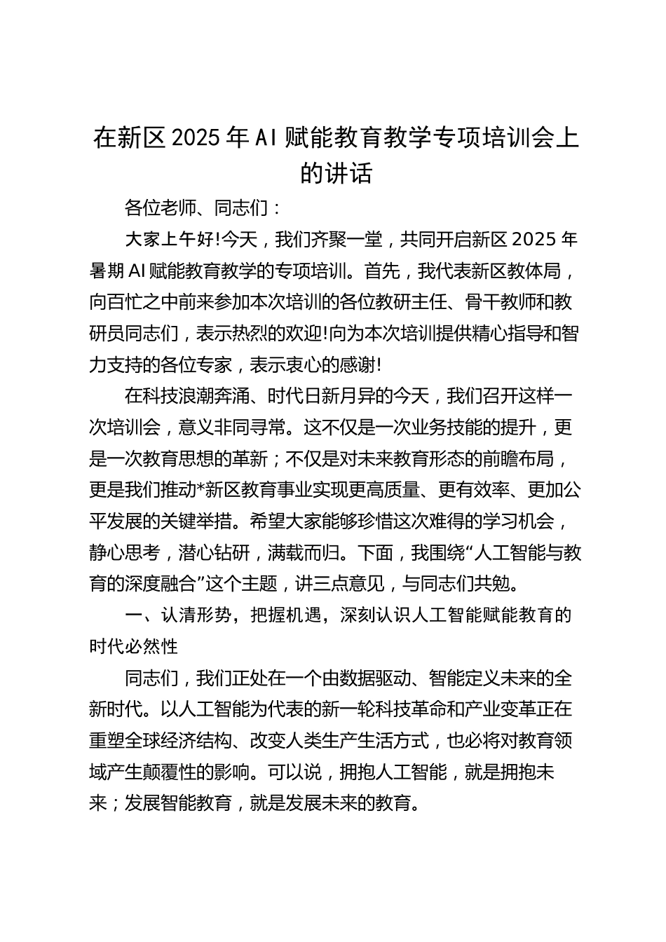 在新區(qū)2025年AI賦能教育教學(xué)專項培訓(xùn)會上的講話