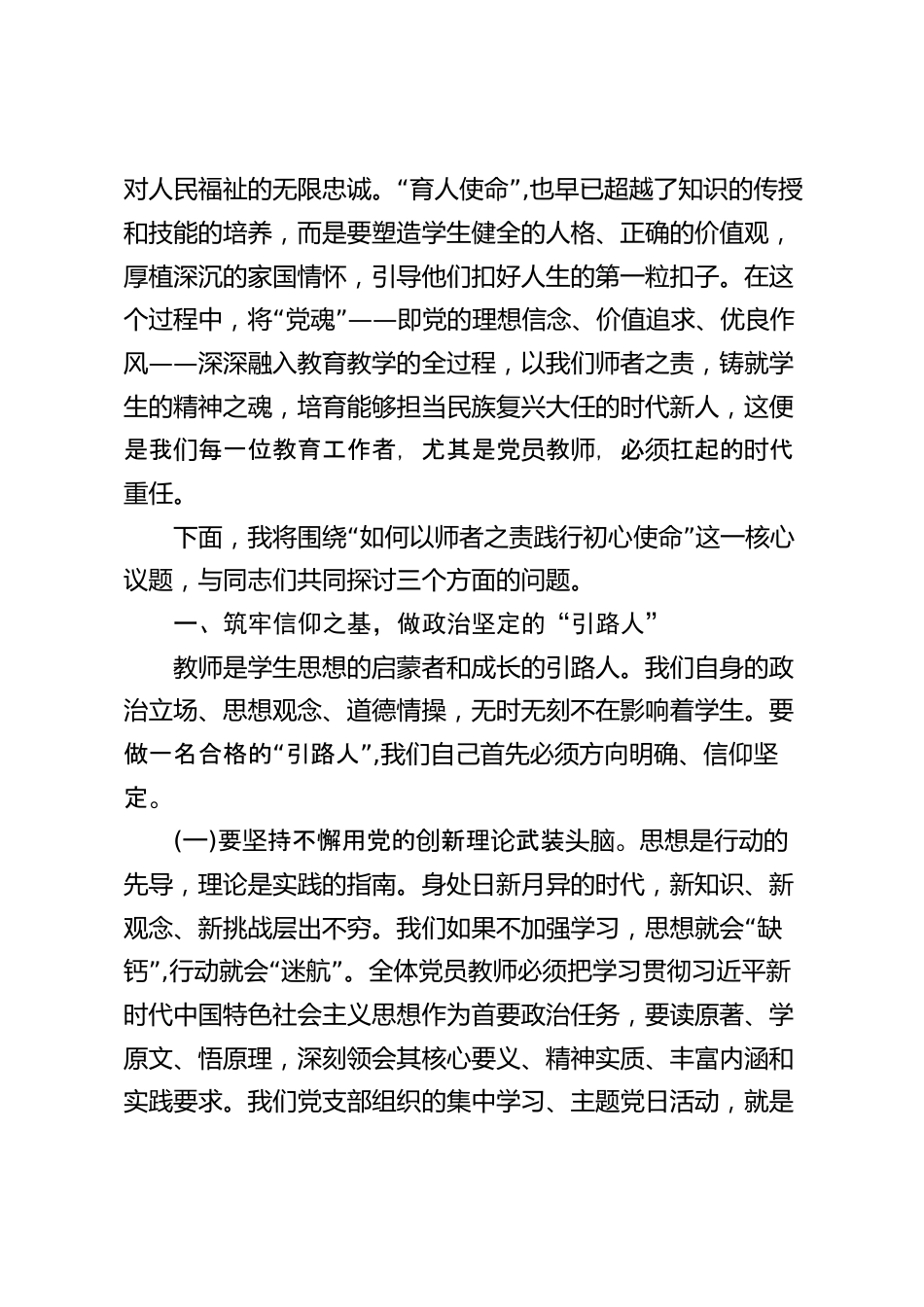 黨課:堅(jiān)守教育初心,勇?lián)耸姑詭熣咧?zé)鑄黨魂育新人