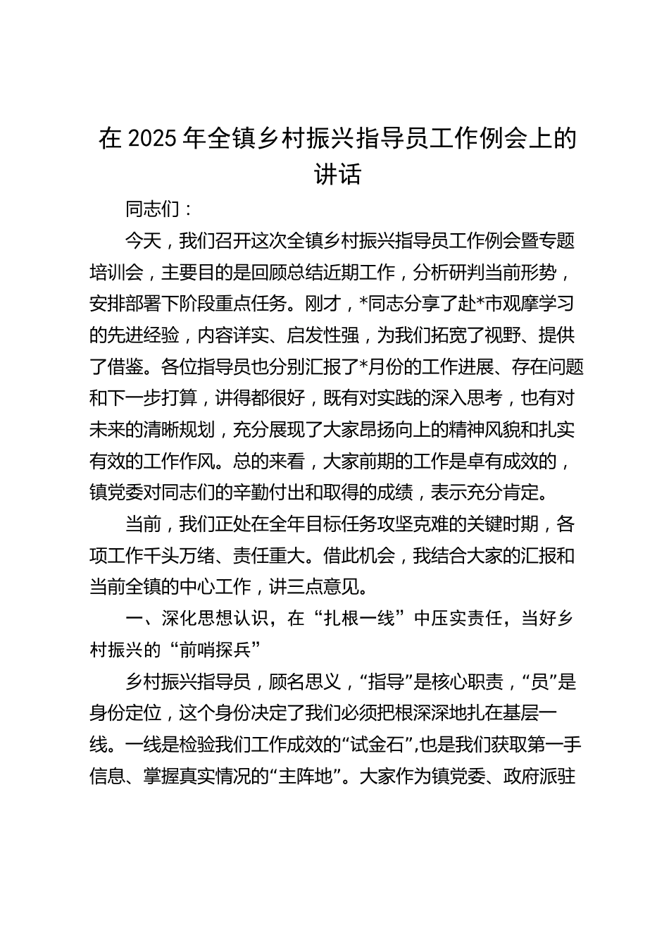 在2025年全鎮(zhèn)鄉(xiāng)村振興指導(dǎo)員工作例會(huì)上的講話(huà)