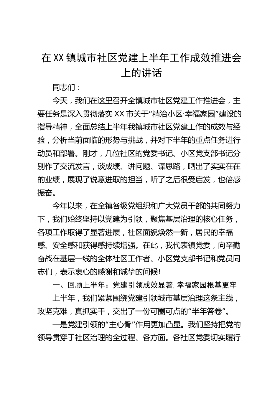 在2025年鎮(zhèn)城市社區(qū)黨建上半年工作成效推進會上的講話