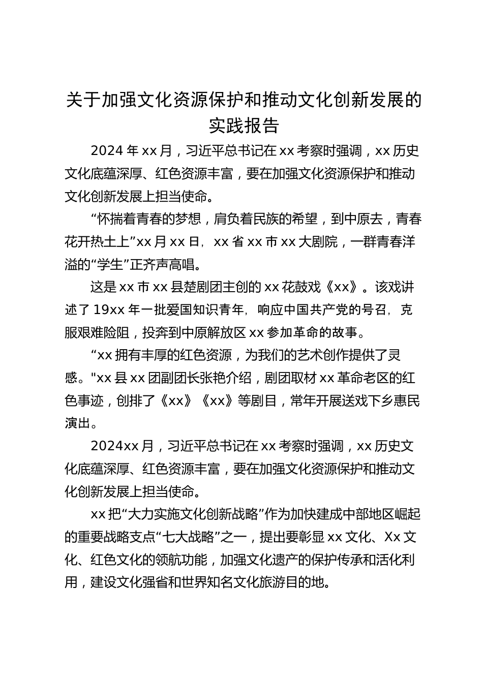 關(guān)于加強文化資源保護和推動文化創(chuàng)新發(fā)展的實踐報告
