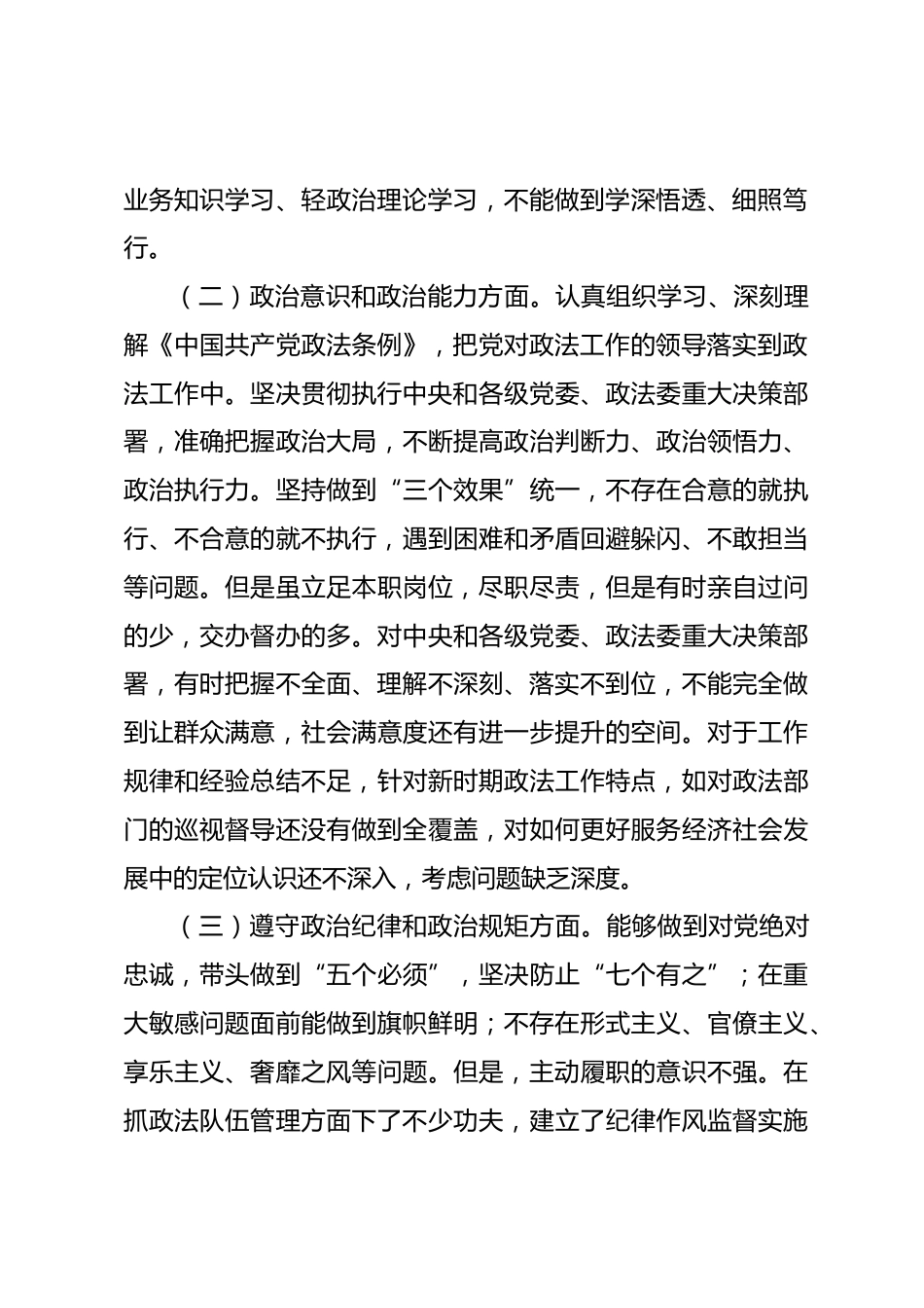 某縣級政法委書記“政治忠誠”剖析材料按照政法隊伍教育整頓實施方案要求,我深刻領(lǐng)會習近平法治思想,認真學習貫徹習近平總書記關(guān)于政法工作的重要論述和重要講話精神,積極參加黨史教育、警示教育、英模教育,對照黨章黨規(guī)以及政法隊伍教育整頓自查自糾找出的問題、存在的頑瘴痼疾、開門納諫反饋的意見、談心談話征求的建議進行梳理匯總,查找了自身存在的不足,剖析了問題產(chǎn)生的根源,明確了整改方向和具體措施?,F(xiàn)將個人剖析情況報告如下:一、存在問題(一)政治信仰和政治立場方面。堅持黨對政法工作的絕對領(lǐng)導,帶頭學習貫徹習近平新時代中國特色社會主義思想,不...