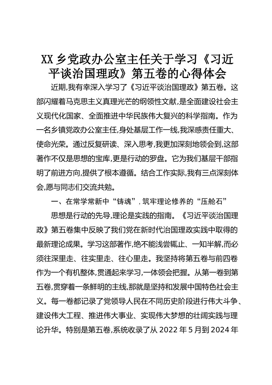 XX鄉(xiāng)黨政辦公室主任關(guān)于學(xué)習(xí)《習(xí)近平談治國(guó)理政》第五卷的心得體會(huì)