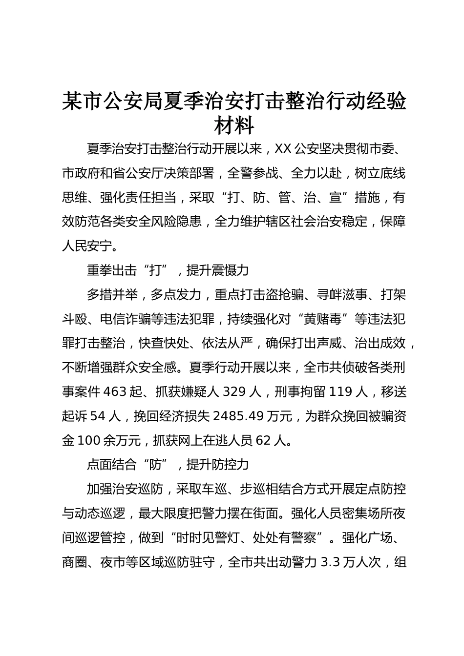 某市公安局夏季治安打擊整治行動經(jīng)驗材料VIP免費