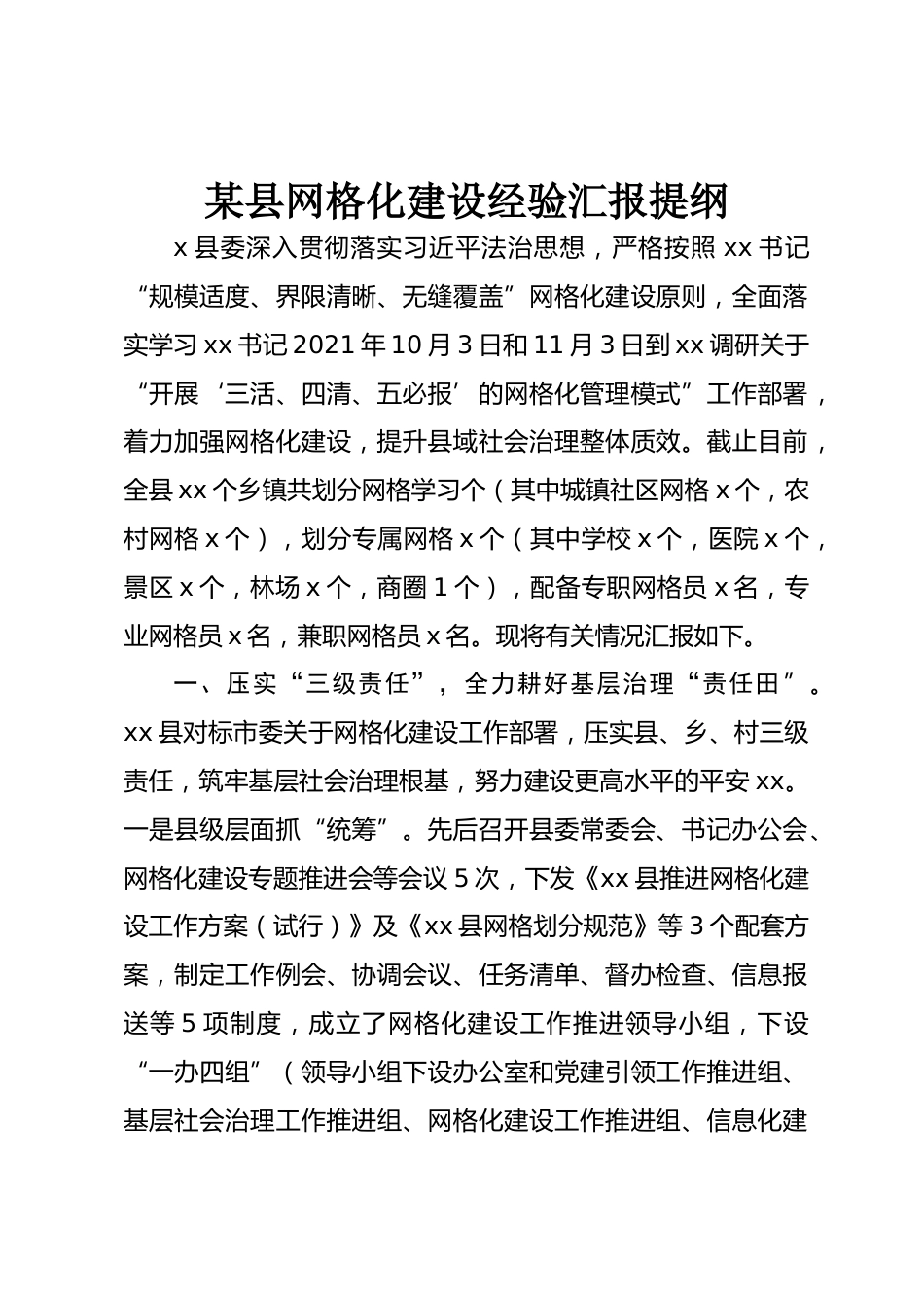 某縣網(wǎng)格化建設(shè)經(jīng)驗(yàn)匯報(bào)提綱