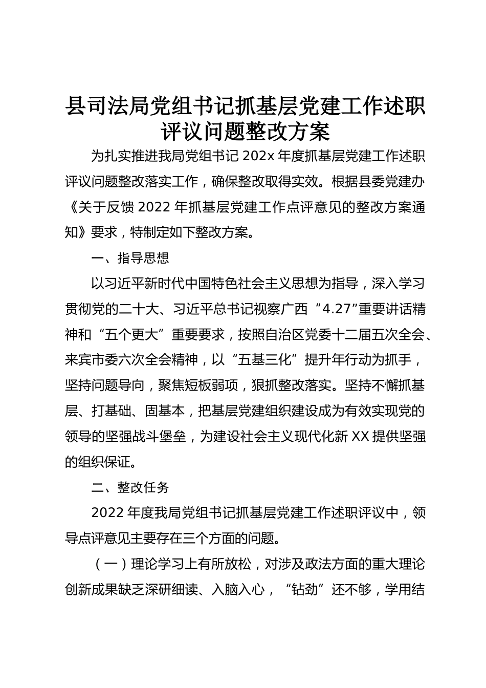 縣司法局黨組書(shū)記抓基層黨建工作述職評(píng)議問(wèn)題整改方案