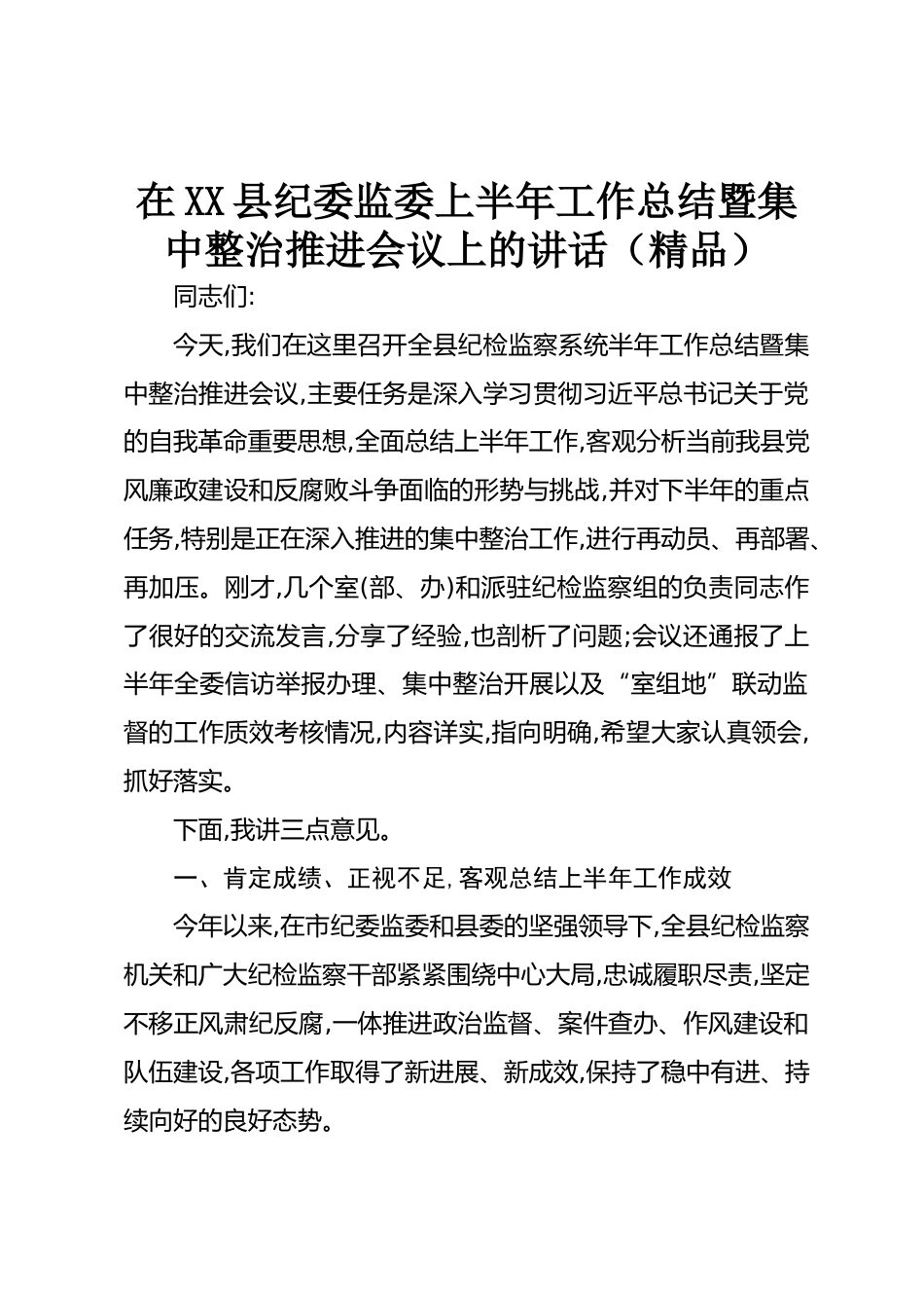 在XX縣紀(jì)委監(jiān)委上半年工作總結(jié)暨集中整治推進(jìn)會(huì)議上的講話(精品)
