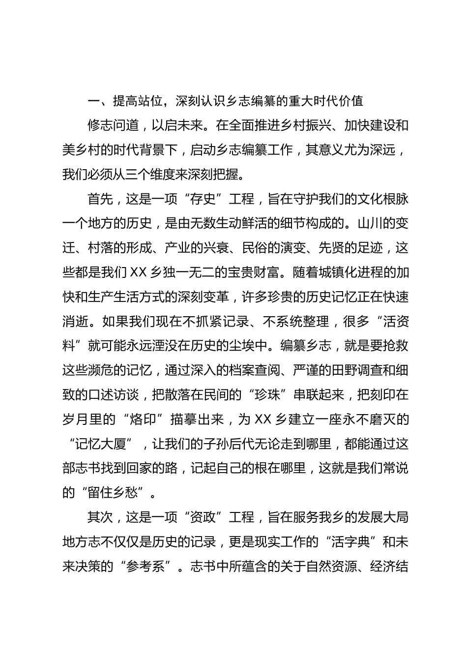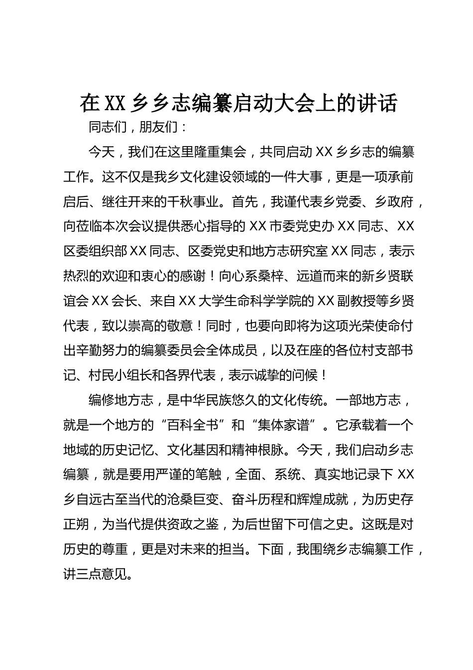 在XX鄉(xiāng)鄉(xiāng)志編纂啟動大會上的講話
