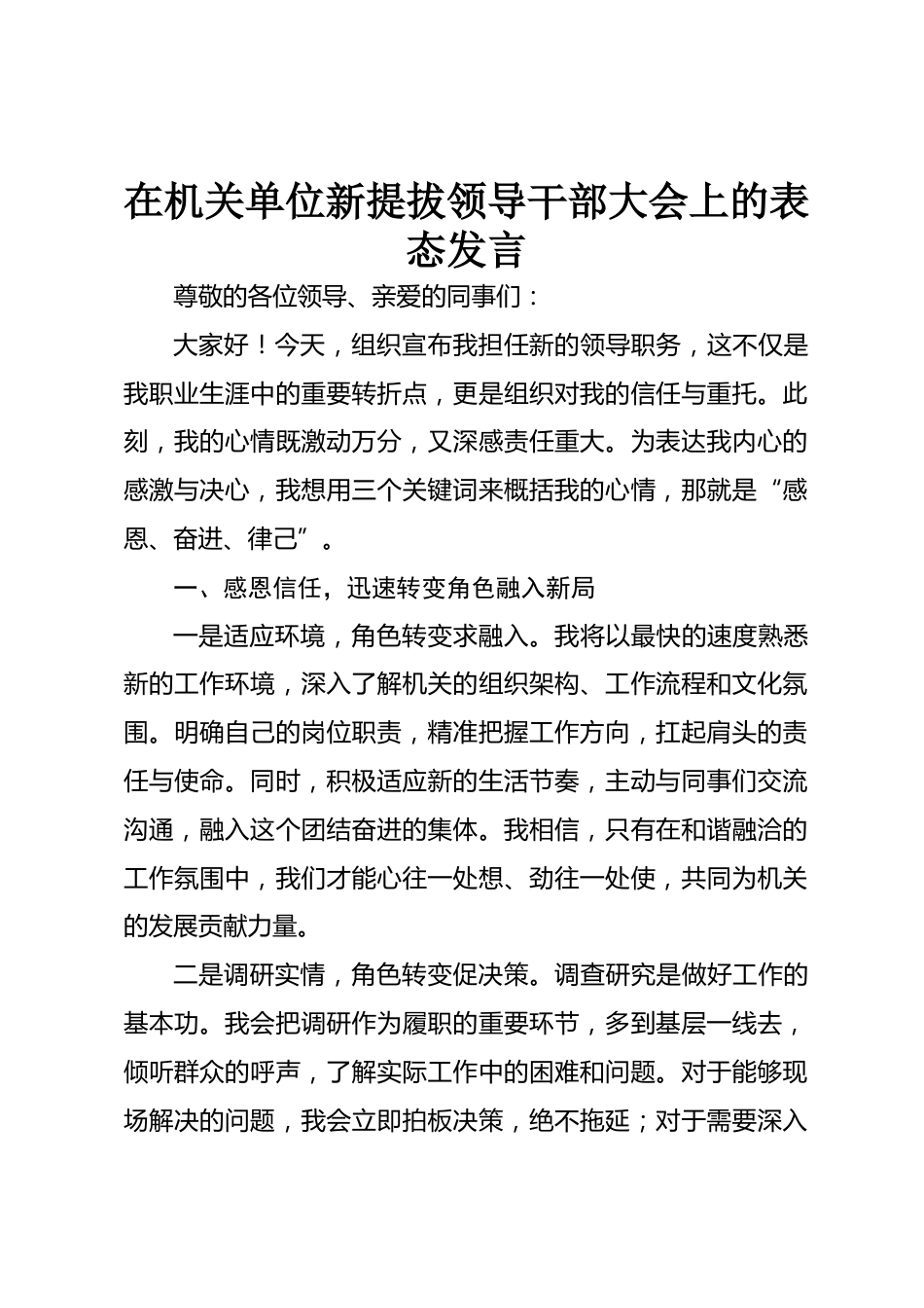 在機關單位新提拔領導干部大會上的表態(tài)發(fā)言