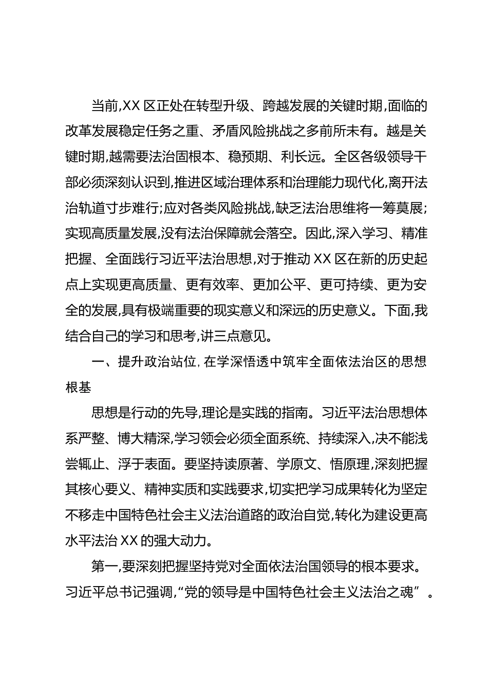 在XX區(qū)委理論學(xué)習(xí)中心組習(xí)近平法治思想專題學(xué)習(xí)會(huì)上的講話