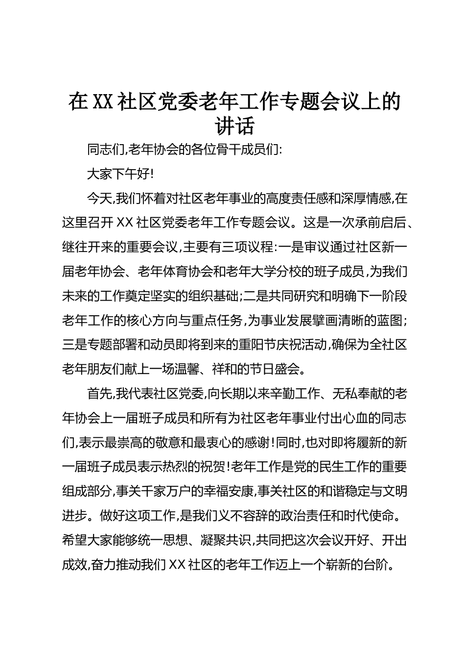 在XX社區(qū)黨委老年工作專題會議上的講話VIP免費(fèi)