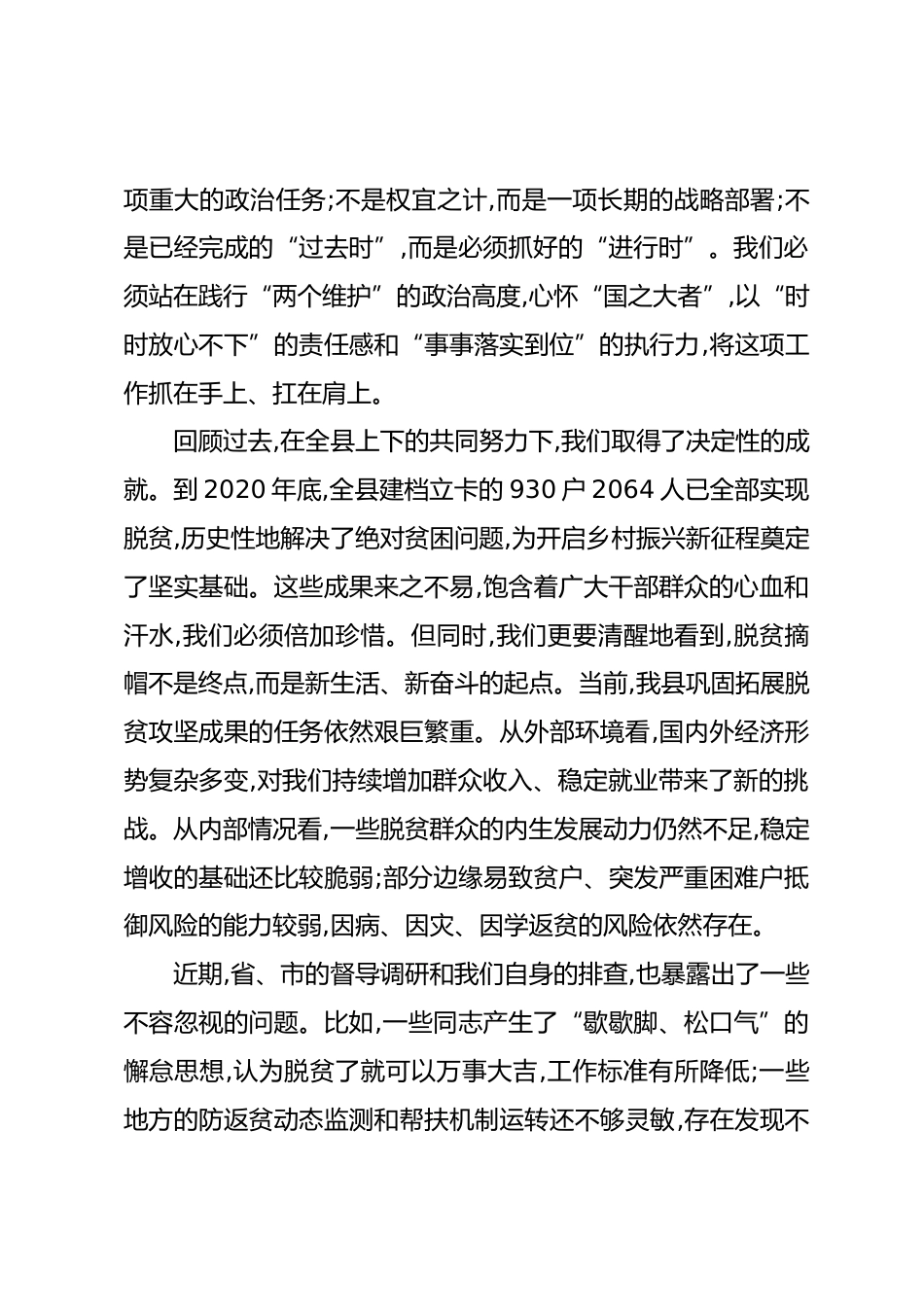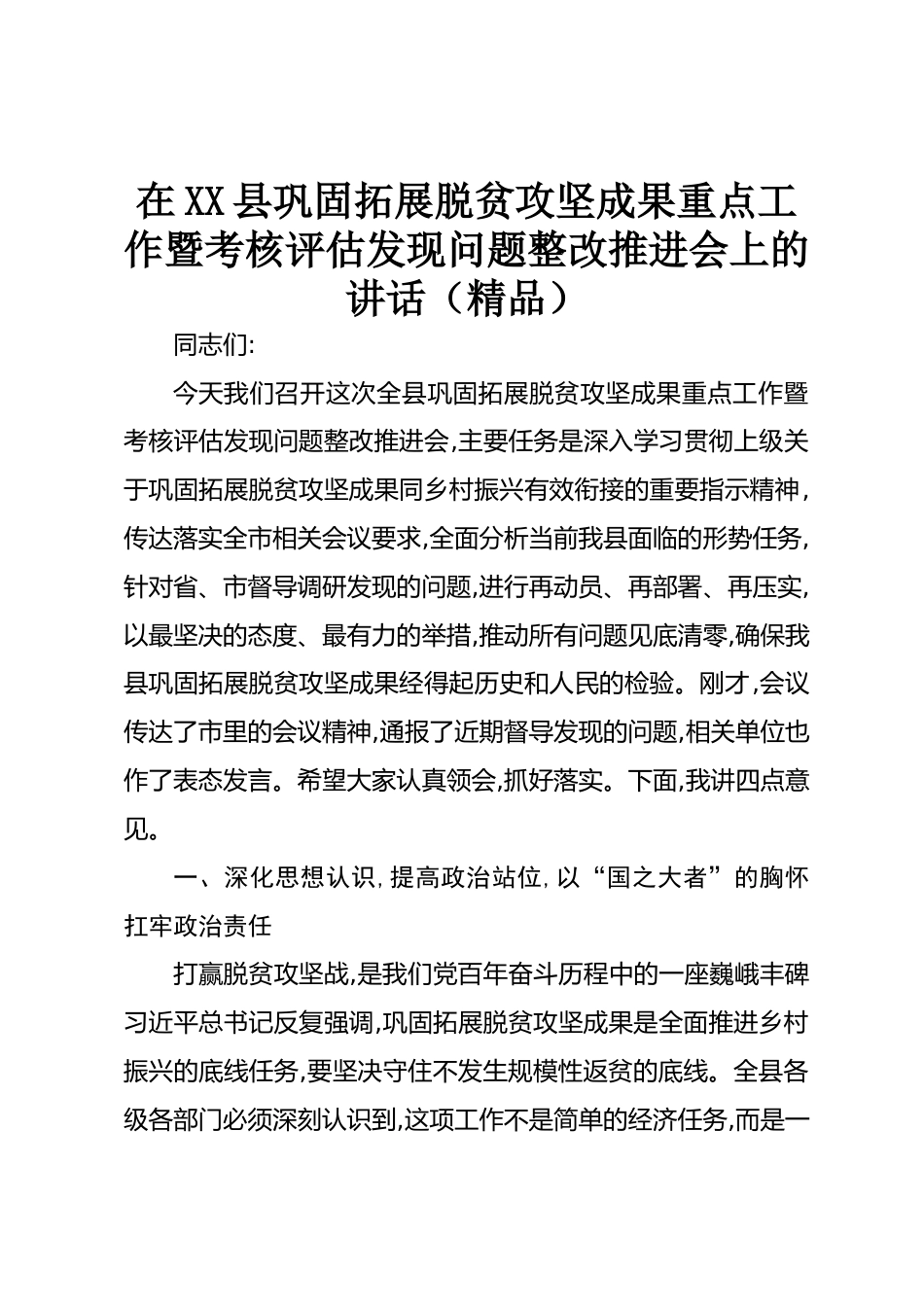 在XX縣鞏固拓展脫貧攻堅(jiān)成果重點(diǎn)工作暨考核評(píng)估發(fā)現(xiàn)問題整改推進(jìn)會(huì)上的講話(精品)