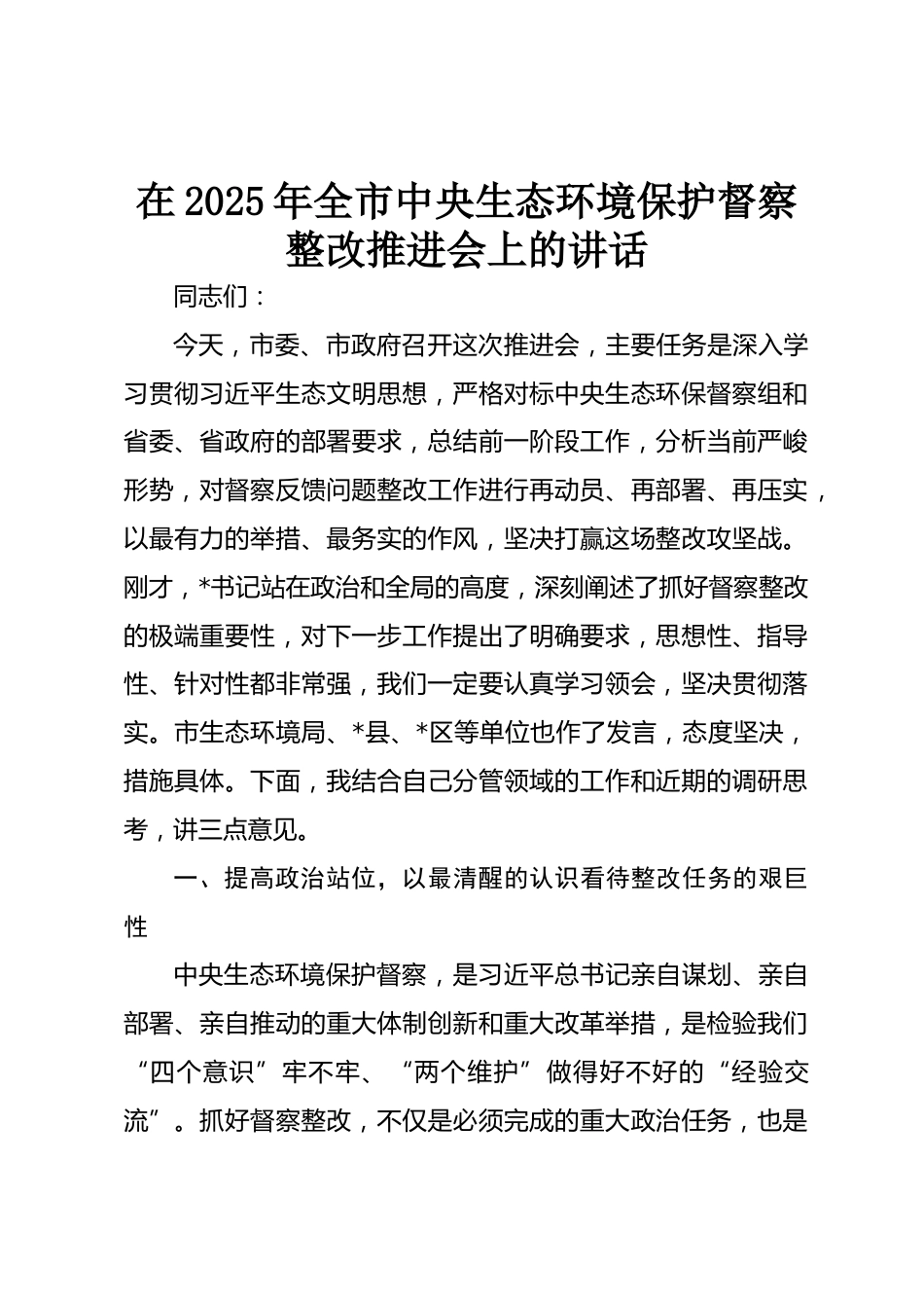 在2025年全市中央生態(tài)環(huán)境保護(hù)督察整改推進(jìn)會上的講話