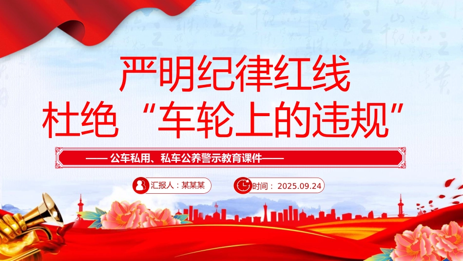 公車私用警示教育黨課PPT:嚴明紀律紅線 杜絕車輪上的違規(guī)(帶講稿)