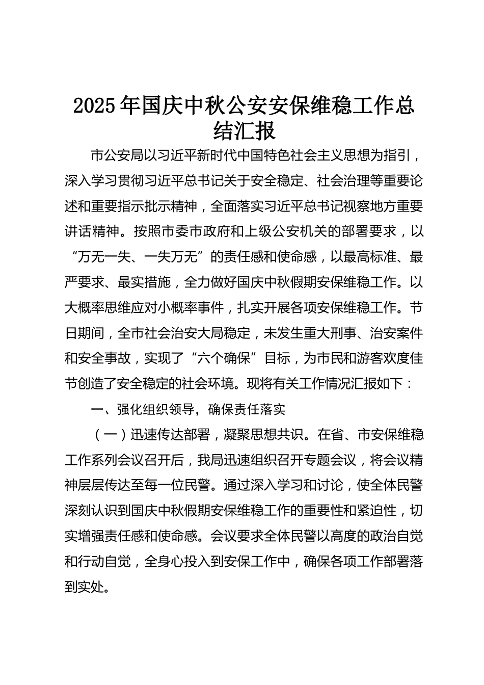 2025年國慶中秋公安安保維穩(wěn)工作總結(jié)匯報