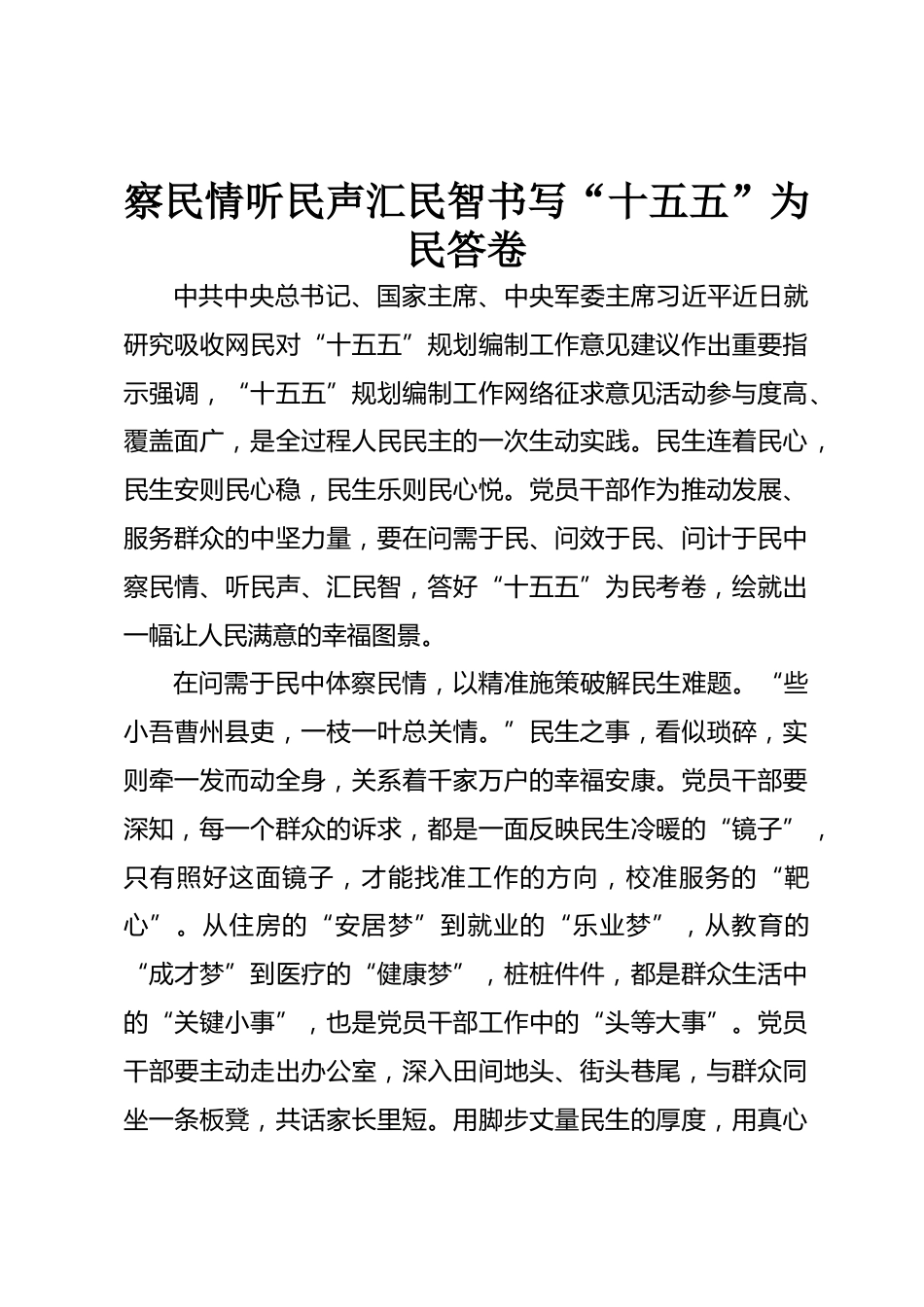 察民情聽民聲匯民智書寫“十五五”為民答卷