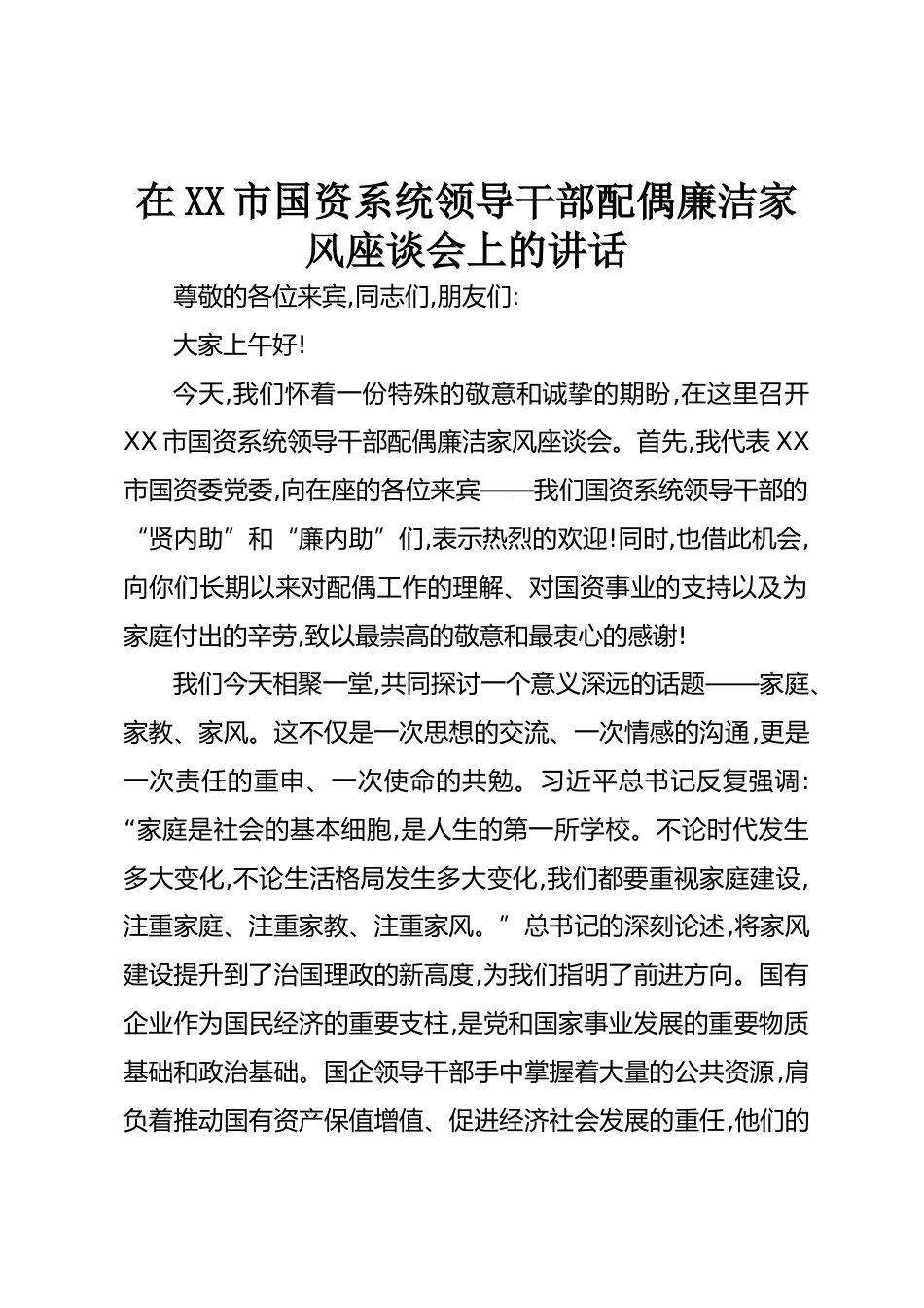 在XX市國資系統(tǒng)領(lǐng)導(dǎo)干部配偶廉潔家風(fēng)座談會上的講話