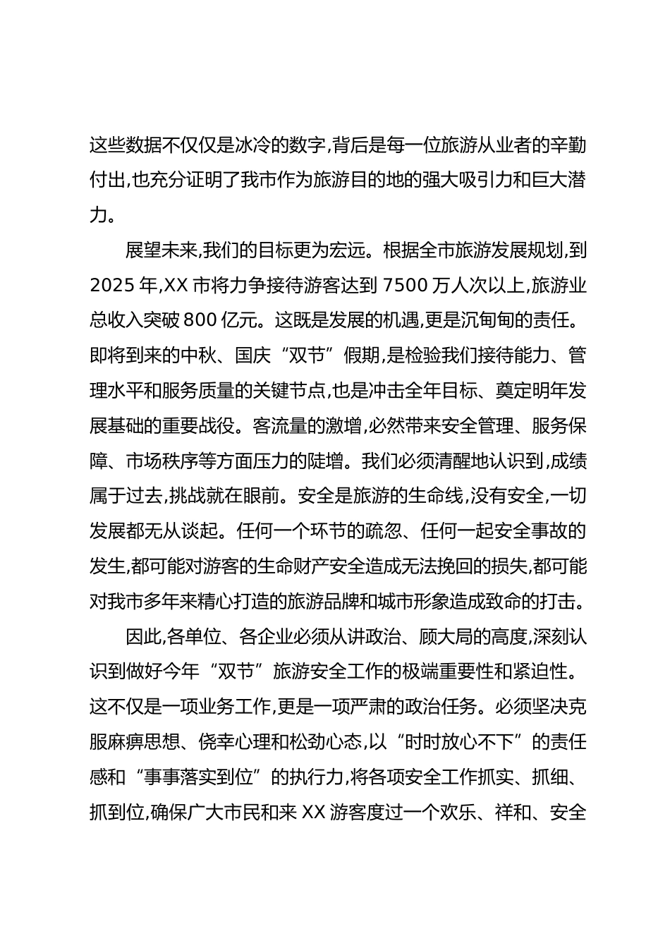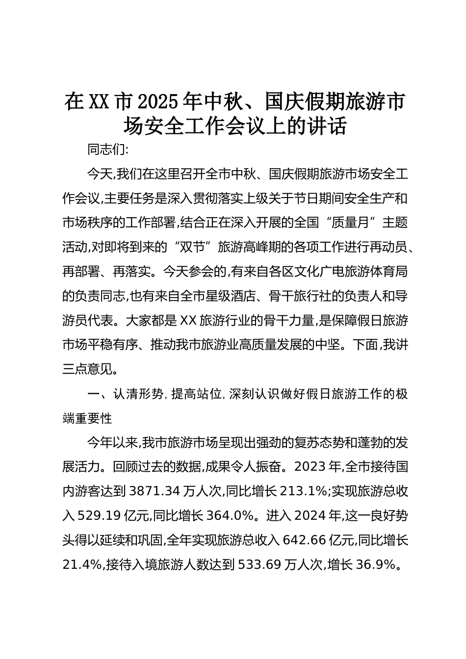 在XX市2025年中秋、國(guó)慶假期旅游市場(chǎng)安全工作會(huì)議上的講話