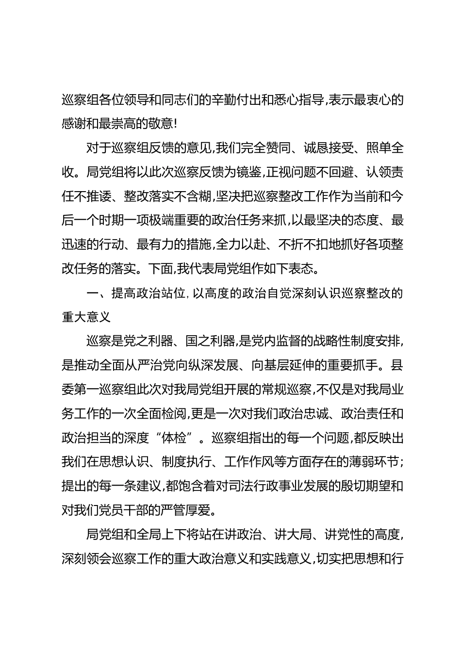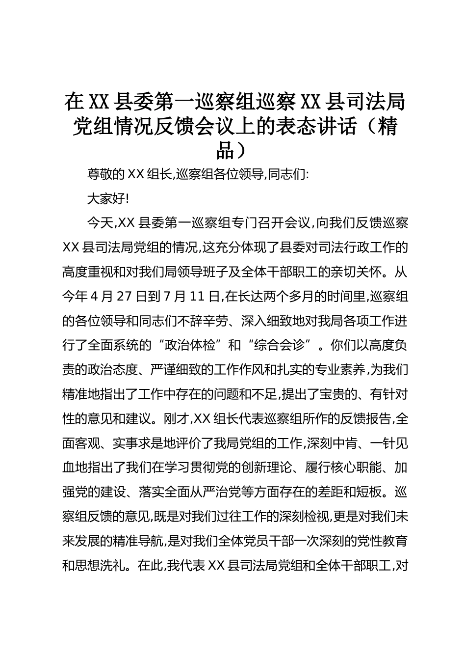在XX縣委第一巡察組巡察XX縣司法局黨組情況反饋會(huì)議上的表態(tài)講話(精品)VIP免費(fèi)