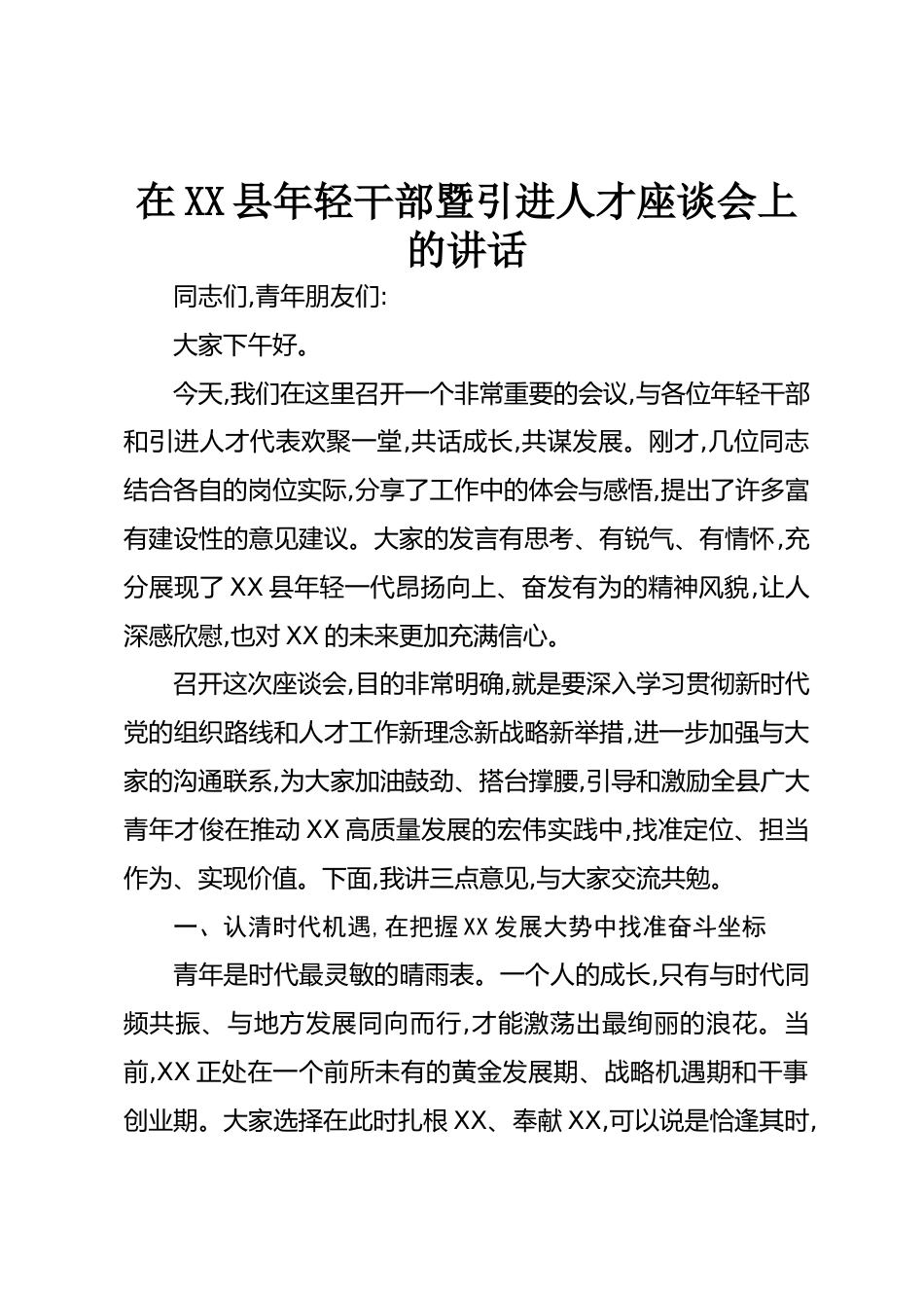 在XX縣年輕干部暨引進(jìn)人才座談會(huì)上的講話