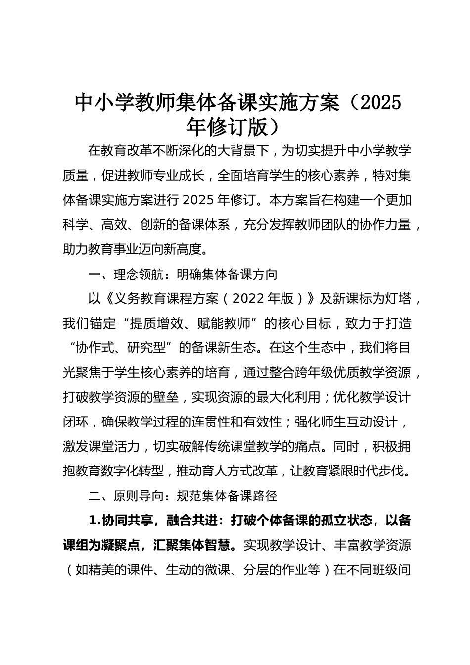 中小學(xué)教師集體備課實(shí)施方案(2025年修訂版)