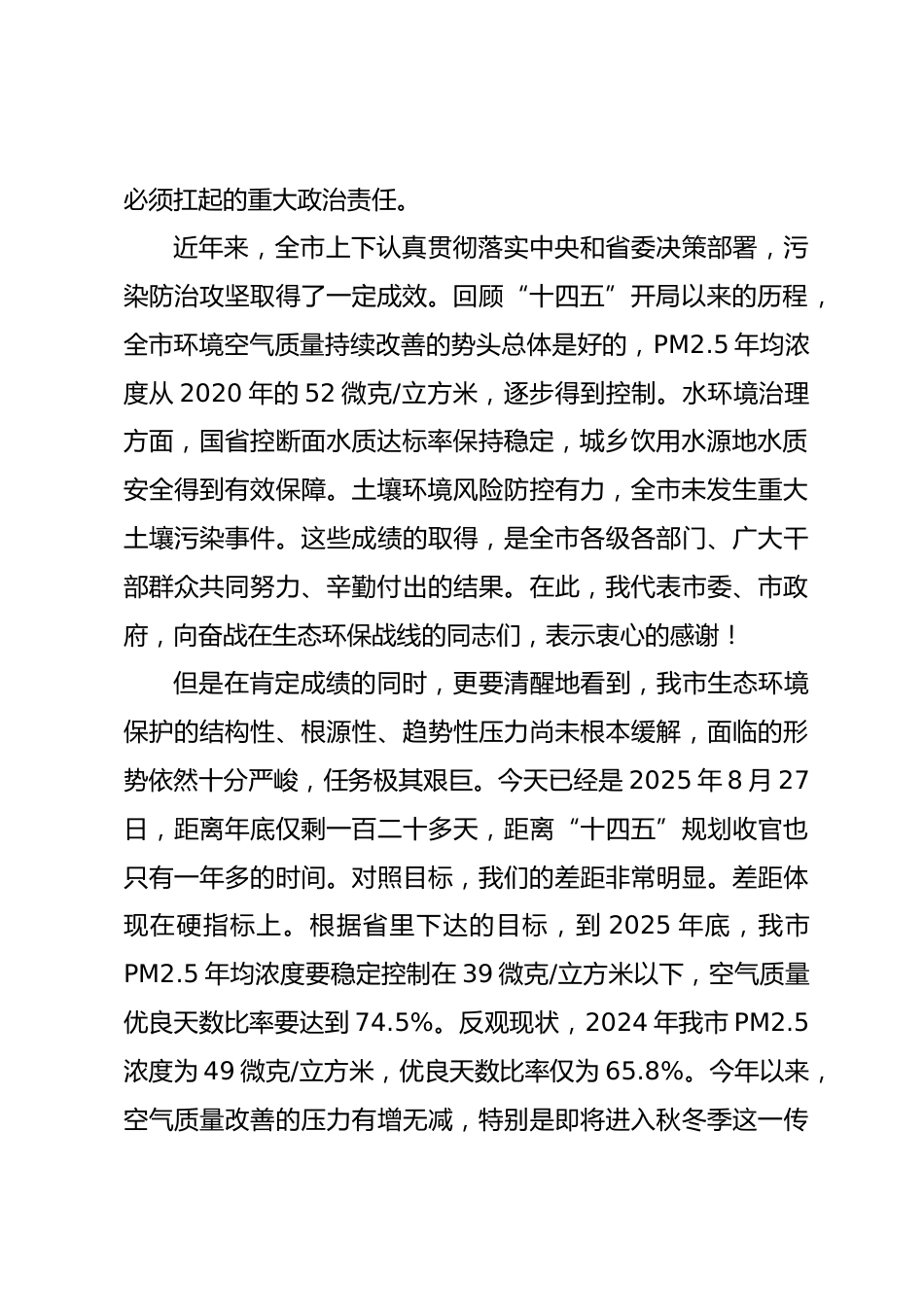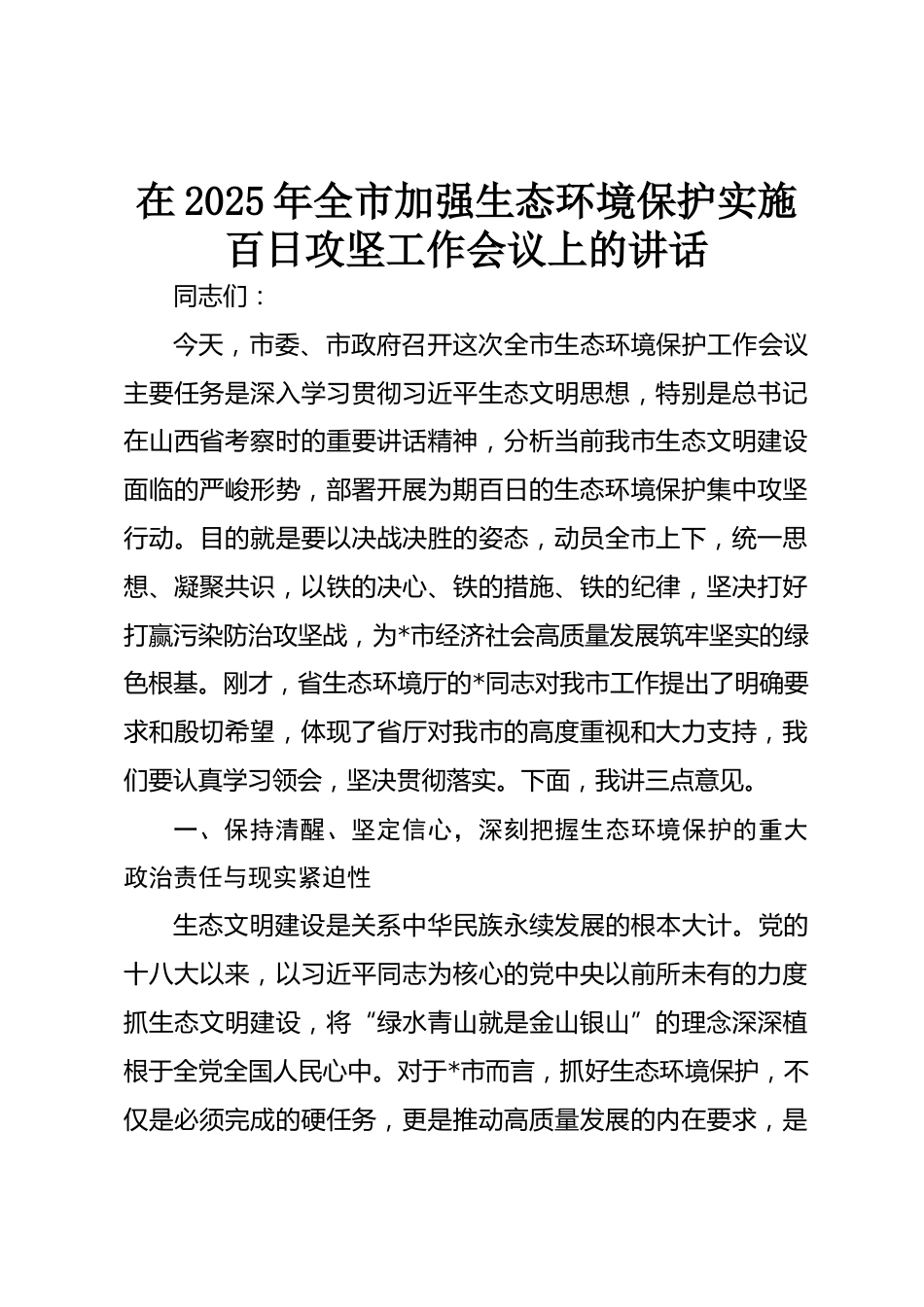 在2025年全市加強生態(tài)環(huán)境保護實施百日攻堅工作會議上的講話
