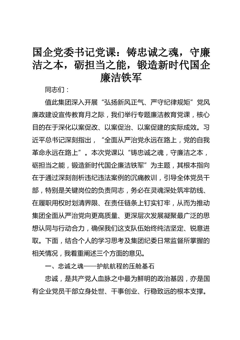 國企黨委書記黨課:鑄忠誠之魂,守廉潔之本,礪擔當之能,鍛造新時代國企廉潔鐵軍