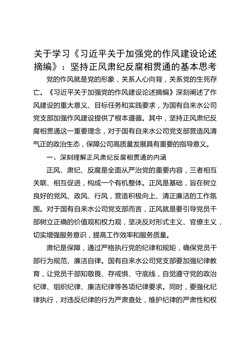 國有自來水公司關(guān)于學(xué)習(xí)《習(xí)近平關(guān)于加強(qiáng)黨的作風(fēng)建設(shè)論述摘編》:堅(jiān)持正風(fēng)肅紀(jì)反腐相貫通的基本思考