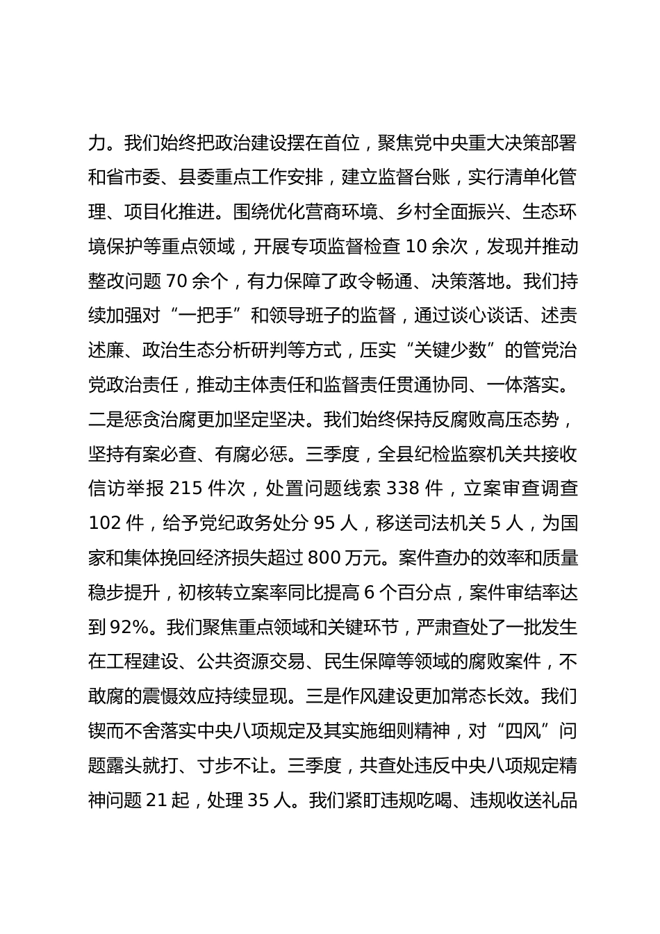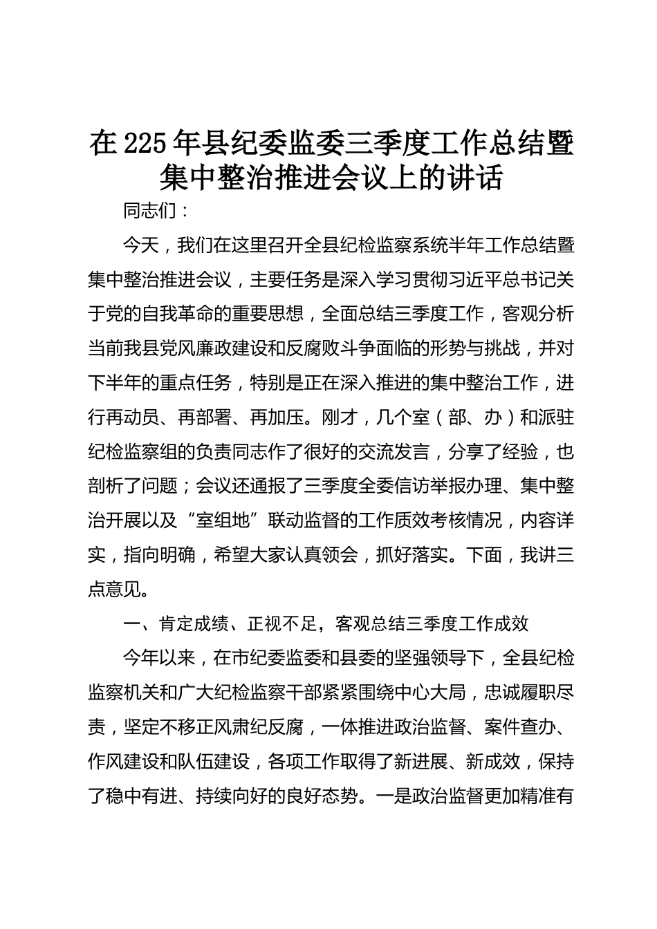 在225年縣紀委監(jiān)委三季度工作總結(jié)暨集中整治推進會議上的講話
