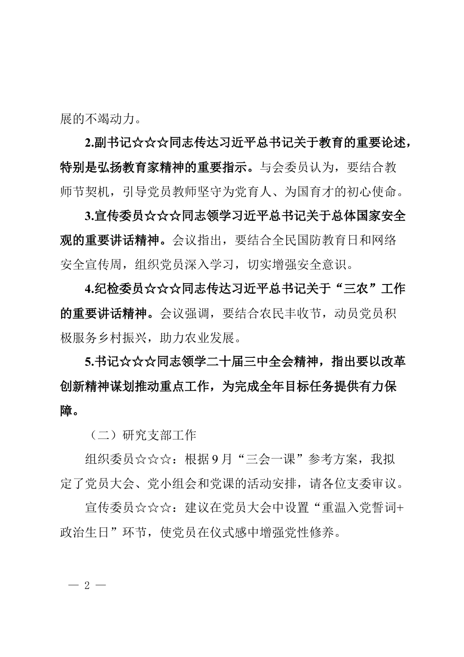 2025年9月黨支部“三會(huì)一課”會(huì)議記錄參考