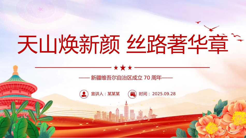 2025年新疆維吾爾自治區(qū)成立70周年黨課PPT課件(帶講稿):天山煥新顏絲路著華章