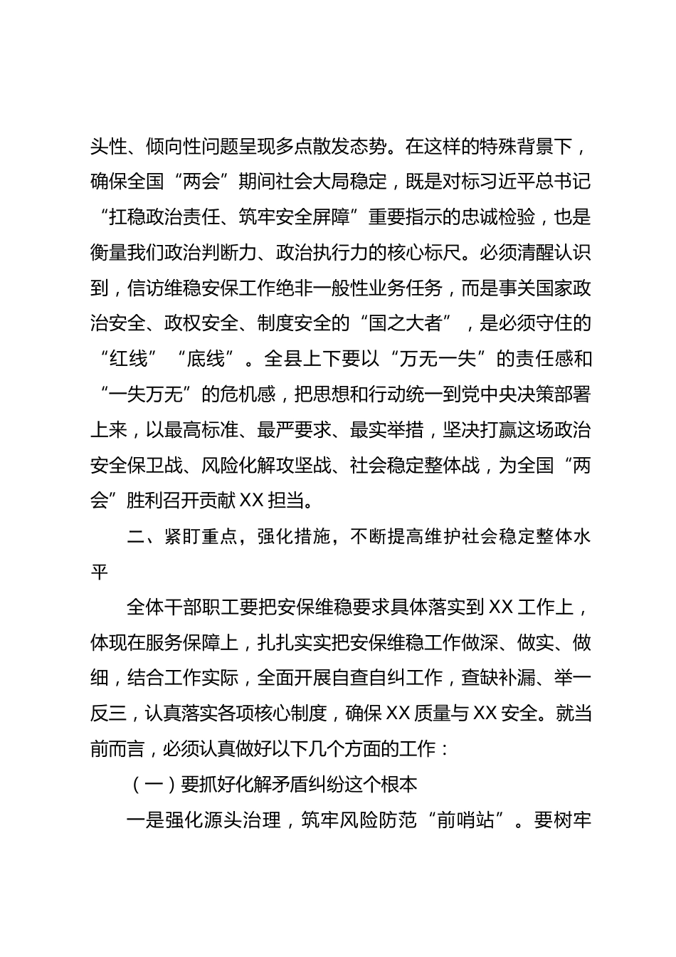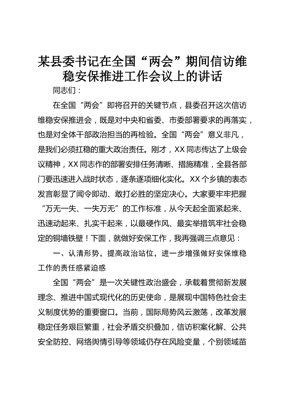 某縣委書(shū)記在全國(guó)“兩會(huì)”期間信訪維穩(wěn)安保推進(jìn)工作會(huì)議上的講話