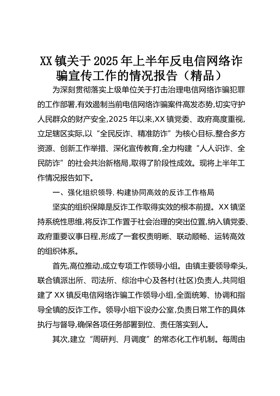 XX鎮(zhèn)關(guān)于2025年上半年反電信網(wǎng)絡(luò)詐騙宣傳工作的情況報(bào)告(精品)